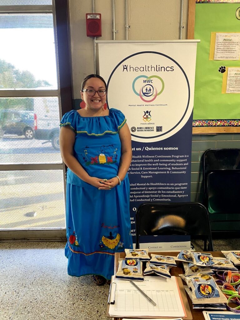 In celebration of Hispanic Heritage Month, Healthlincs participated in Charles Carroll’s festivities. Our care coordinator, Stephany, proudly represented the Hispanic community by wearing traditional attire, engaging with families, and sharing valuable information about the MWC program including resources to support social determinants of health.